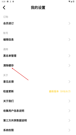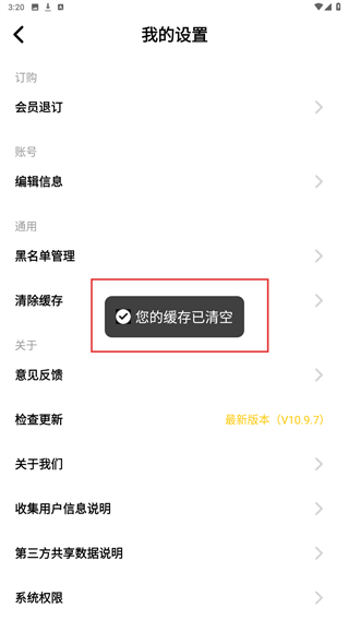 3、进入我的设置界面内,点击下方清除缓存的按钮。