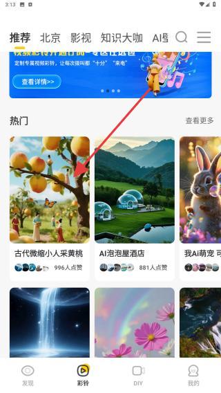 2、进入到彩铃的页面内,在热门下点击你要设置的内容。