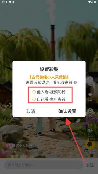 4、将彩铃设置他人看或者自己看,选择好后点击确认设置的按钮即可完成。