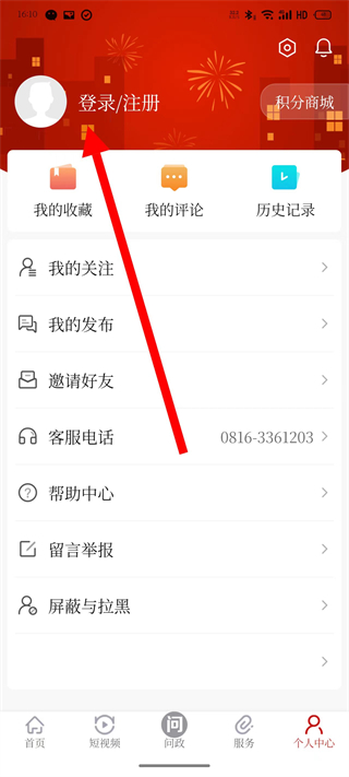 1、打开i江油,点击底部个人中心,进入个人中心页面。