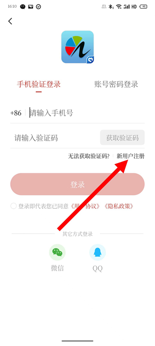 3、在登录界面,点击新用户注册,进入新用户注册页面。