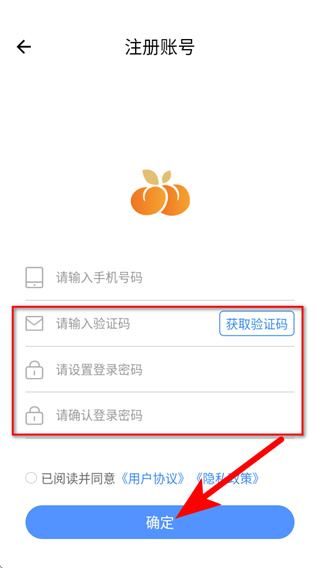 4、设置登录密码并再次输入密码完成确认,勾选相关协议后,点击确定,完成账号和密码注册。