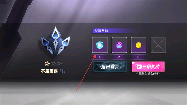 4、战斗结束后,获得不屈黑铁评级及结算奖励,点击返回首页。