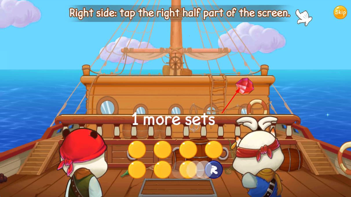 1、海盗主题与节奏融合:以海盗冒险为背景,将指挥动物、接住物品等操作与音乐节奏紧密结合,营造独特的冒险氛围,让闯关更具故事感。