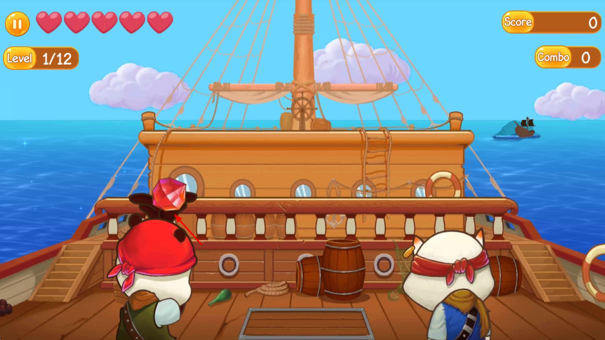 3、海盗角色成长线:通过闯关积累分数可解锁海盗的新装扮和技能,技能能在关键时刻辅助接物或调整节奏,增强角色代入感与成长乐趣。