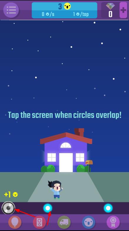 2、根据屏幕上的提示进行操作,当出现的圆形图标重叠时,迅速点击屏幕,即可获得分数,通过不断准确点击,累积分数。
