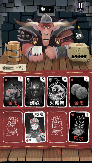 5、极简的地牢画风搭配沉浸式音效,昏暗的卡牌对战场景、怪物攻击的警示音效,营造出紧张刺激的冒险氛围,让每一次卡牌出牌都充满仪式感。