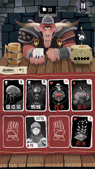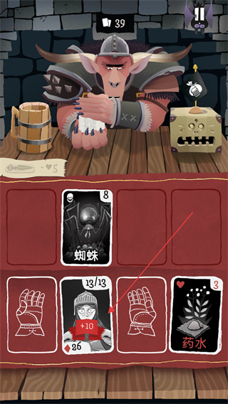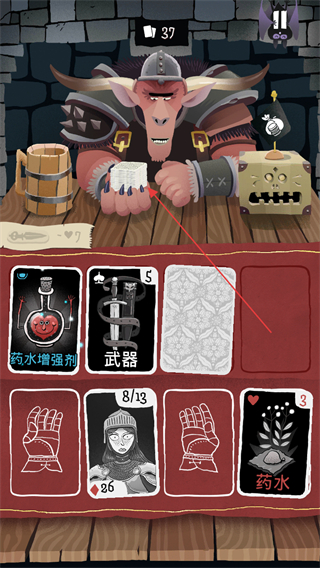 2、使用药水卡牌,提升对应属性,增强自身状态,推进对战流程。