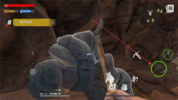 3、按提示制作长矛,使用材料制作长矛,解锁新武器。