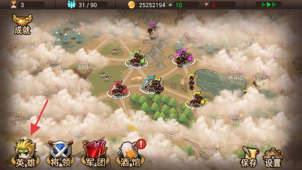 1、点击主界面【英雄】按钮,进入英雄相关功能页。