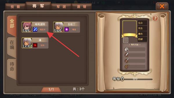 2、在“将军”界面,选中“哈利波特”等将领,查看或培养属性。