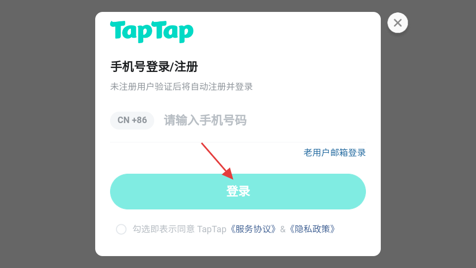 3、输入手机号码,勾选同意协议后,点击【登录】完成操作。