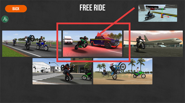 2、在【FREERIDE】界面,点击带有摩托与警车的关卡场景,进入该关卡的自由驾驶挑战。