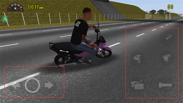 3、驾驶时,左侧方向键控制转向,右侧按键可做特技、刹车、加油,需平衡操作保证摩托稳定行驶。