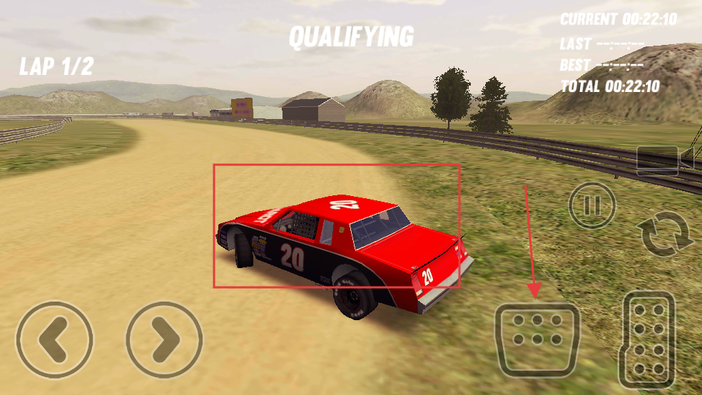2、比赛开始后,用左侧方向按钮控制赛车转向,右侧按钮控制油门等操作,沿赛道行驶,开始第一圈比赛。