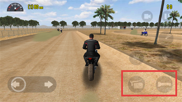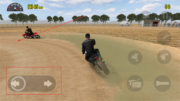 4、通过左侧方向按钮控制摩托车转向,弯道或遇对手时及时调整方向,维持最佳行驶路线。