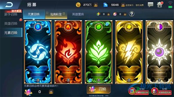 2、元素召唤:只抽光暗,光暗强度高,很多副本可以代替其他系,且后期主力需要光暗狗粮,英雄置换:建议换水系,水奶水刺都猛,元素殿堂:存住,留到14天后换公主。
