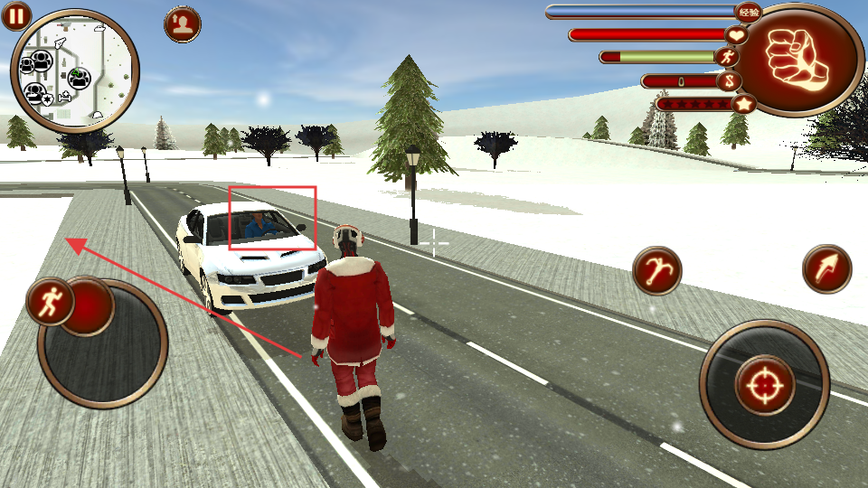 4、在道路上遇到车辆时,可利用跑步按钮快速移动,躲避车辆或接近车辆进行互动。