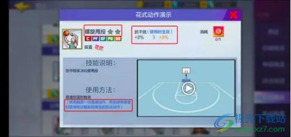 2、分位的主要得分方式是投篮而不是扣篮和上篮,所以花式动作选择螺旋甩投和两个白嫖的投篮花式就足够了。