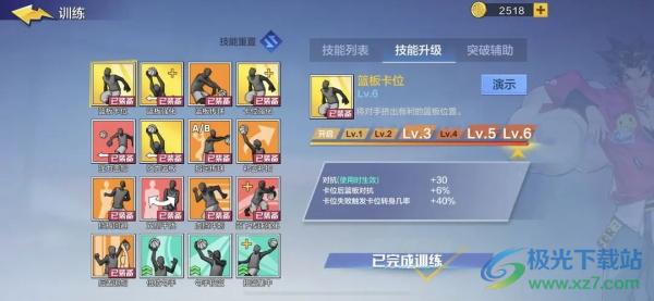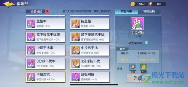 4、俱乐部技能的选择升级如图所示,优先选择卡位和篮板对抗。