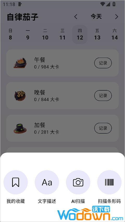 通过AI拍照、文字输入或条码扫描记录餐点摄入。
