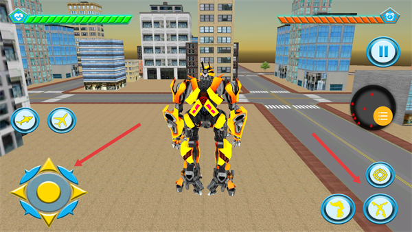 2、操控【机甲】时用左侧按键移动,右侧功能键切换形态,熟悉操作来掌控机甲。