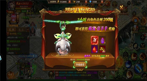 开服第一天的限时任务,等级达到1转150就可以触发,两小时内等级达到200级即可获得。算是一个比较简单的任务,但这里需要掌握一个小技巧,每日的10次经验任务,2次激情烧猪在触发任务后再去完成,如果你在触发任务前已经把这两个涨经验的任务完成,也能靠开服前3天才有的经验祈福来补,但是要花费少量钻石,但对于萌宠属性来说绝对是超值的