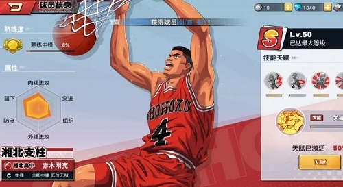 不同玩家的操作习惯不同,选择解锁天赋的顺序也会有很大不同。拿樱木花道来说,技能为:飞人(大招)、飞身篮板、庶民上篮、超级加速、哼哼防守和扑球。