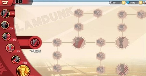 目前,游戏中每个球员都有6个技能,1个大招及5个小技能(仙道的“锋卫摇摆人”除外)。每个技能均有10个左右的专属天赋,需要消耗篮球币、技能训练卡及球员特训卡来解锁。