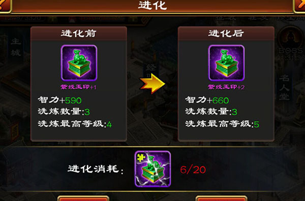 3、一件未达到最高品质的军备可以通过进化来提升军备品质,就可以突破洗炼属性的等级上限