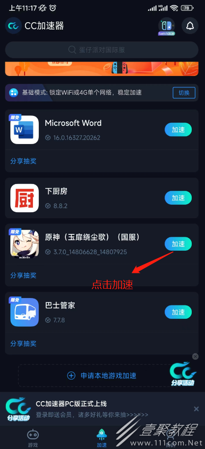 方法三:游戏未在本地区发布,所以进不去,可以尝试用《CC加速器》(点击下载)进行加速(推荐,可以快速登录)