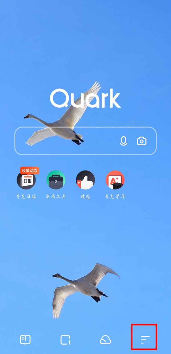 1、打开夸克app,点击底部右侧的三横图标。