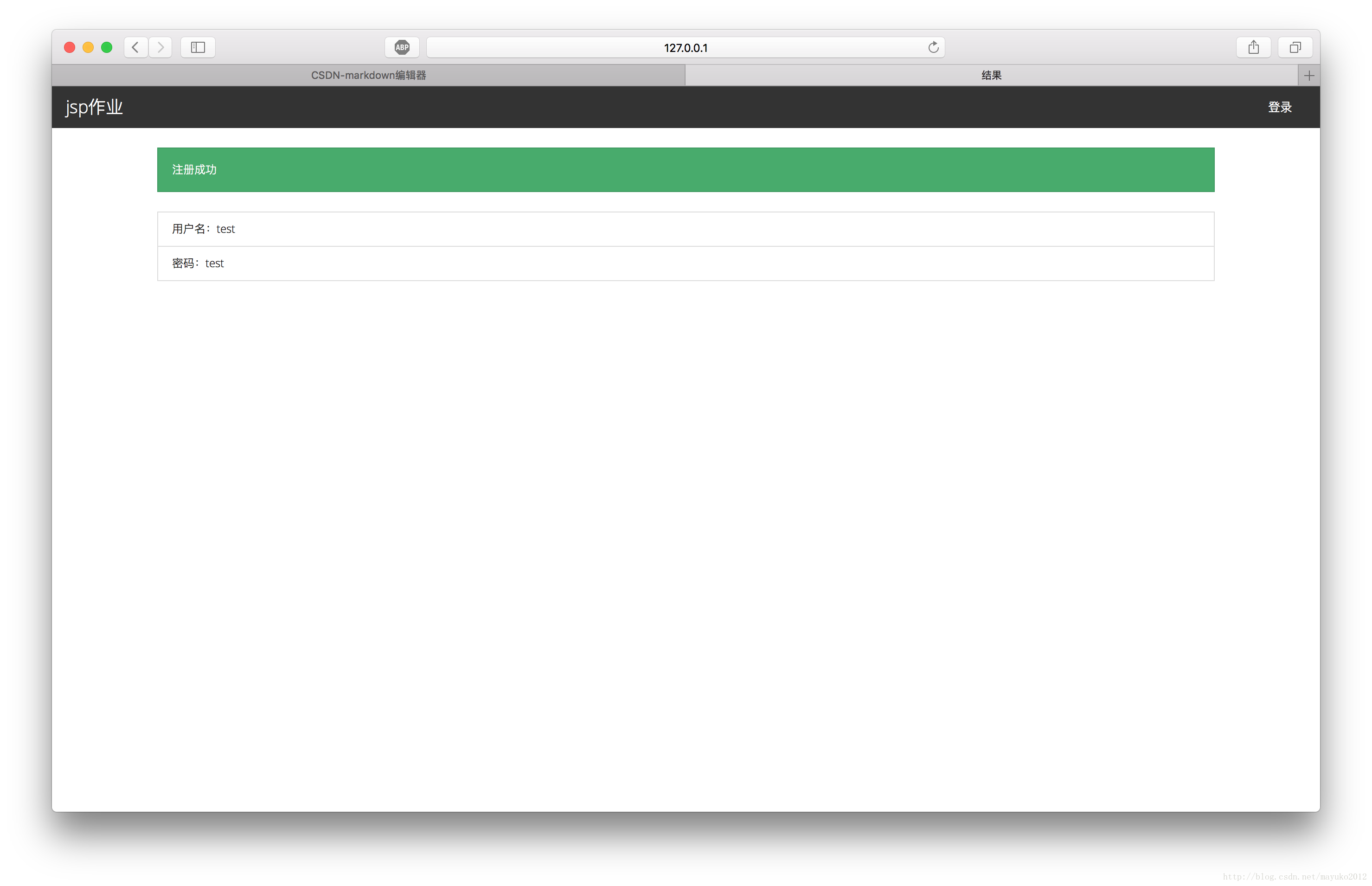 到此这篇关于使用JSP实现简单的用户登录注册页面示例代码解析的文章就介绍到这了,更多相关JSP实现简单的用户登录注册页面内容请搜索一聚教程网以前的文章或继续浏览下面的相关文章希望大家以后多多支持一聚教程网!