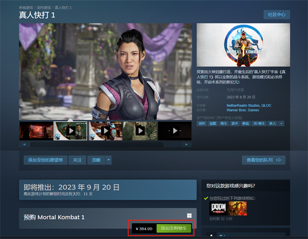 经典IP真人快打1PC版即将于本年度第三季度的九月二十日发售新作,目前游戏的预购界面也已经在各大游戏平台上架,作为该系列的最新作品,本作的标准版售价达到了惊人的384元。