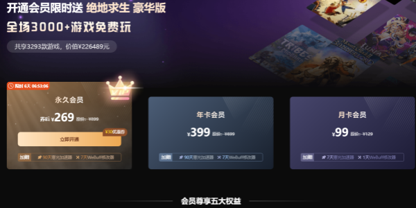 永久会员:269元;年卡会员:399元/年;月卡会员:99元/月。