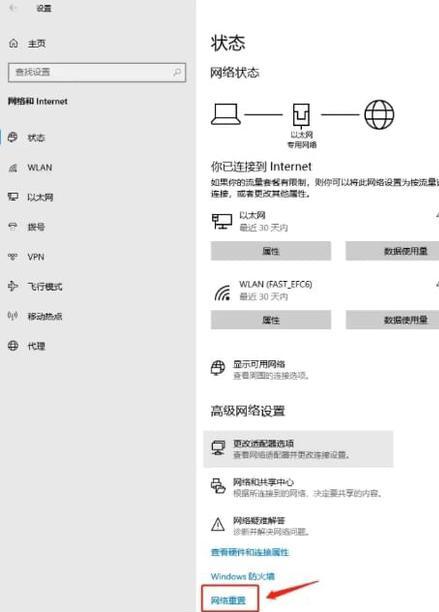 2、或者打开设置,在网络和Internet中点击网络重置重启网络。
