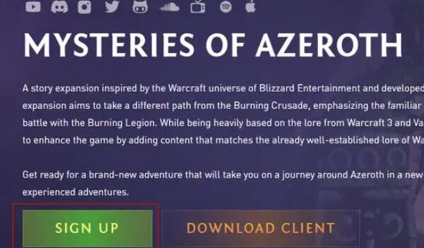 1、首先玩家需要搜索Turtle-wow进入官网然后点击sign up进行注册。
