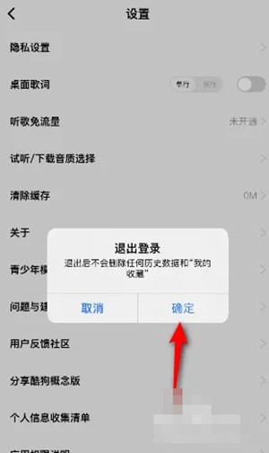 3、之后点击确定。这样便可以退出酷狗概念版的登录。
