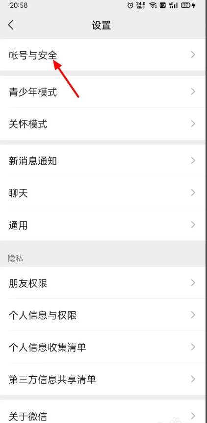 2、然后就进入到设置的页面,点击【账号与安全】;