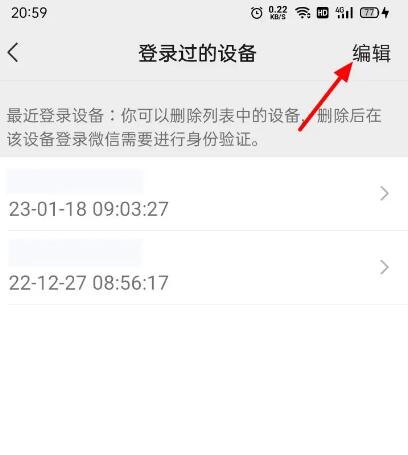 4、之后来到登陆过的设备界面,点击【编辑】;