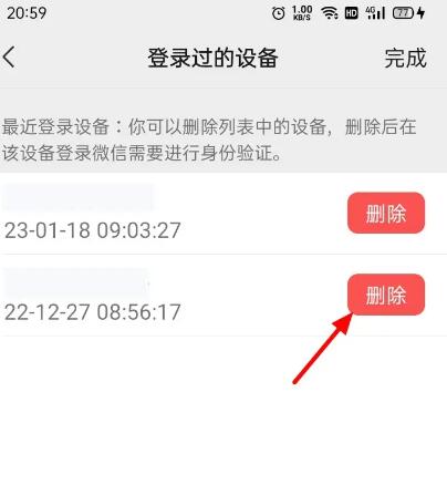 5、最后在编辑的状态下就可以删除已经登陆过的设备了。