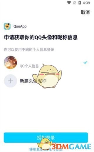 3、在这里我们选择QQ来注册,在QQ授权登录的页面中我们选择QQ帐号之后在点击【授权登录】;
