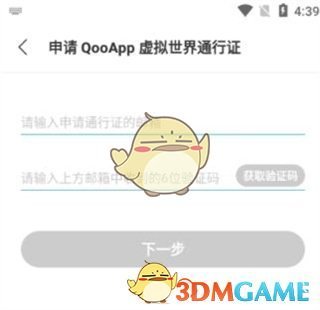 4、最后我们在申请Qoo App虚拟世界通行证的页面中我们输入申请通行证的邮箱账号之后在输入验证码后点击【下一步】即可。