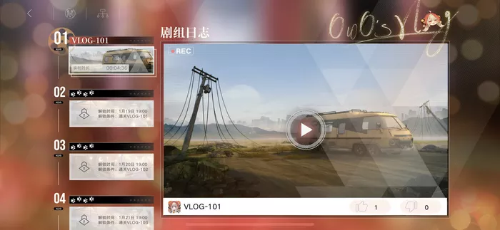 解锁条件:默认解锁VLOG-101,其他VLOG将在指定时间达到对应解锁条件后解锁;