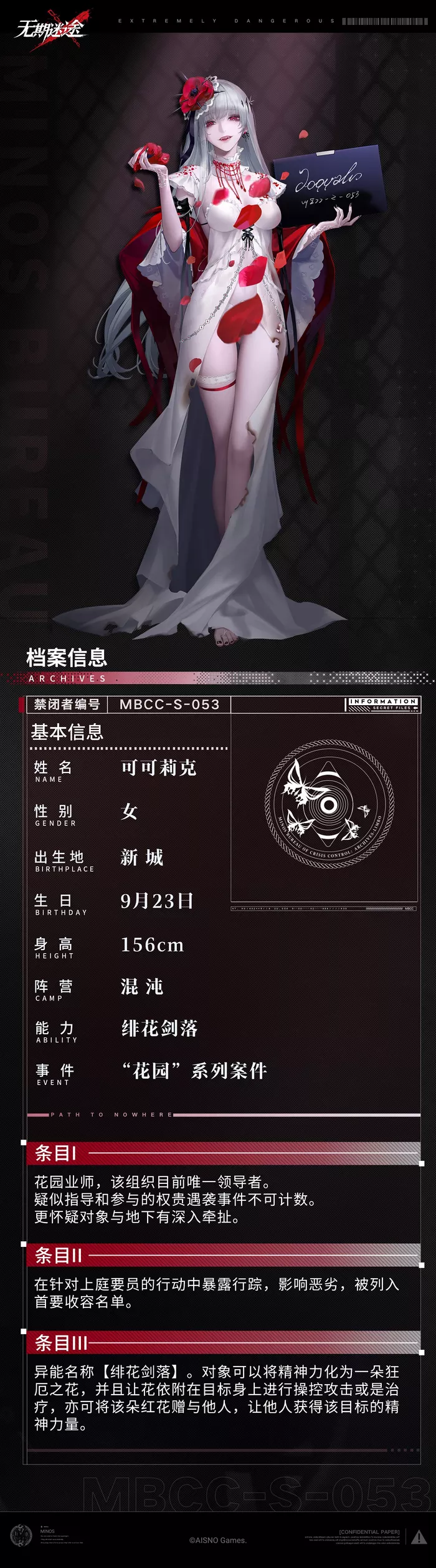 *条目II:在针对上庭要员的行动中暴露行踪,影响恶劣,被列入首要收容名单。