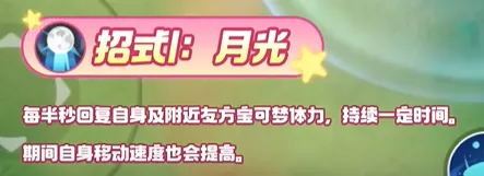 每半秒回复自身及附近友方宝可梦体力,持续一定时间。期间自身移动速度也会提高。