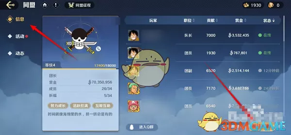 2、紧接着在同盟玩法中,点击信息,继续点击前往同盟。