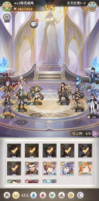 我们在挑战界面同样是可行查看如今关卡阵容情况,同时也还会有推荐战力,在战力满足的情况下,英爱是不难通关的,由于玩家是可行免费取得千仞雪的,因此也是可行的选取千仞雪来搭配阵容,阵容可行参考如下: