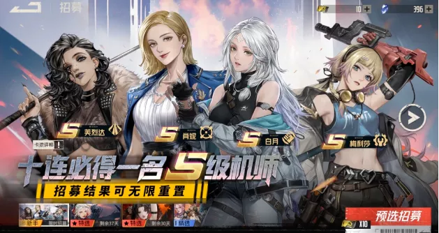 新手10抽无限重置卡池,推荐挑选突击机师芙烈达或格斗家机师白月。