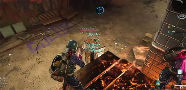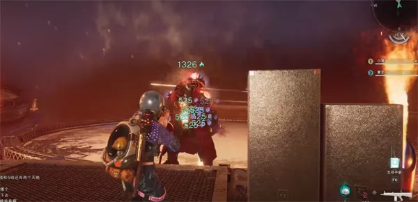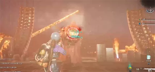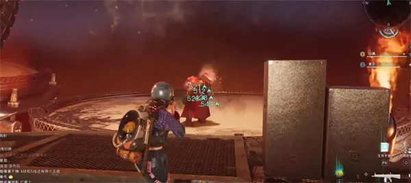9、观察BOSS明显的举手动作来预测喷火攻击,及时躲至挡板后规避。